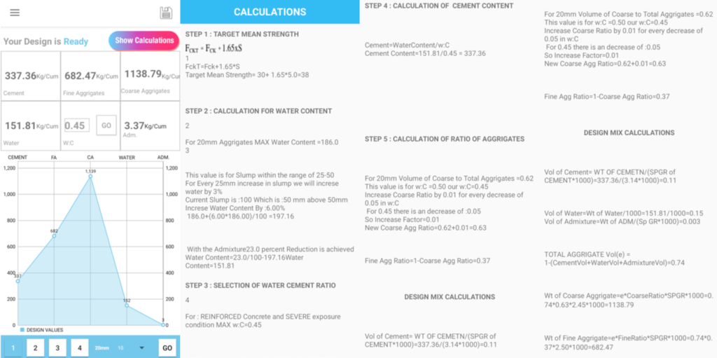 M30 Calculations Using Concrete Mix Design App